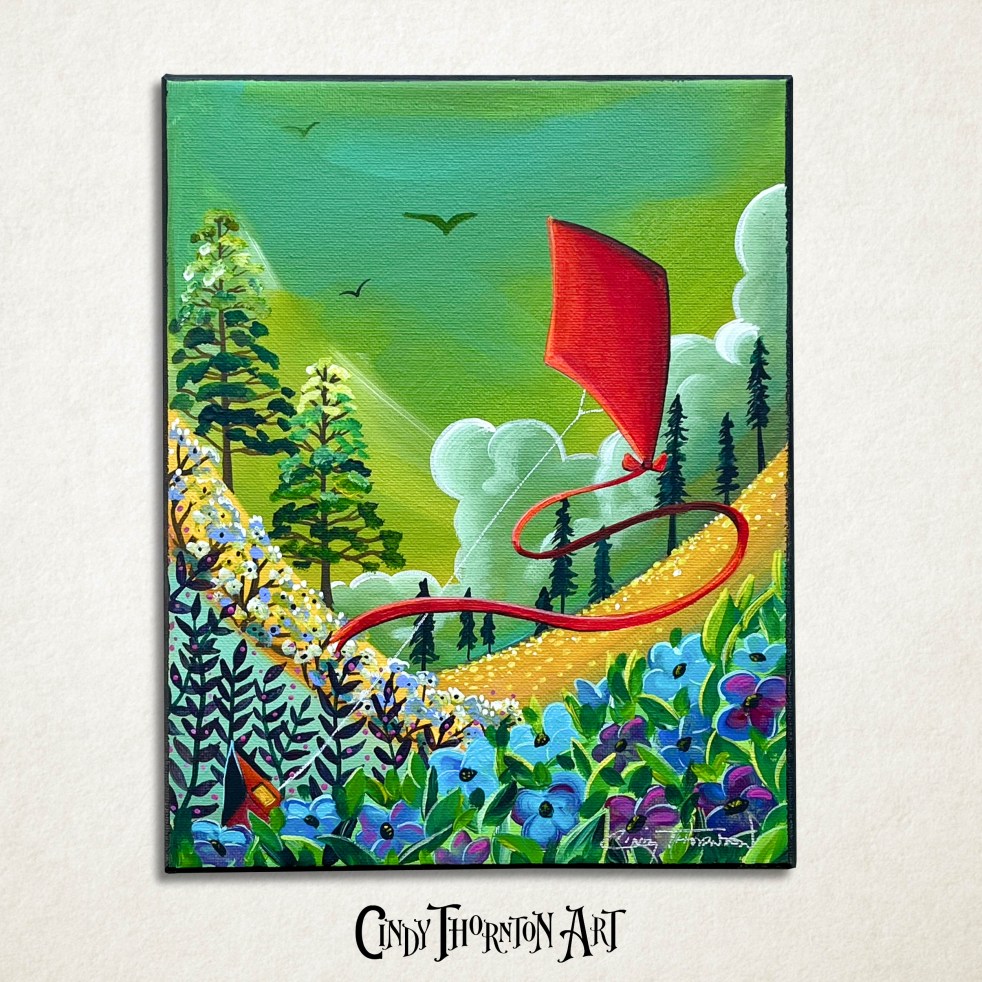 Update: SOLD!Title: "Summer Breeze" - Let's go fly a kite people!Medium: Acrylic on stretched canvasSize: 8x10Additional Info: sealed with a varnish, signed on front, and signed, titled and dated on backAuction Runs: 7/26/25 - 8/2/25, Bidding starts at $.99 cents - No ReserveSee it on eBay here. Today, house flies a kite.