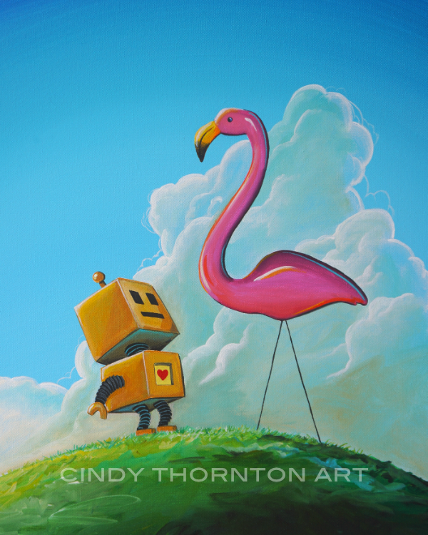art · florida · painting · robots Hello Pinky (flamingo & robot) May 11, 2020June 15, 2020 Cindy Thornton Update: The original has SoldTitle: “Hello Pinky”Original: 16×20 inches – acrylic on canvas10 signed limited edition prints are available herePart of my ongoing robot series…they are curious, sweet, and sometimes get into trouble. Share this: Click to share on Facebook (Opens in new window) Facebook Click to share on Pinterest (Opens in new window) Pinterest Click to share on X (Opens in new window) X Click to share on Tumblr (Opens in new window) Tumblr Click to share on Reddit (Opens in new window) Reddit Click to email a link to a friend (Opens in new window) Email Like Loading... Related Published by Cindy Thornton Illustrative Artist at cindythornton.com View all posts by Cindy Thornton Share this: Click to share on Facebook (Opens in new window) Facebook Click to share on Pinterest (Opens in new window) Pinterest Click to share on X (Opens in new window) X Click to share on Tumblr (Opens in new window) Tumblr Click to share on Reddit (Opens in new window) Reddit Click to email a link to a friend (Opens in new window) Email Like Loading...