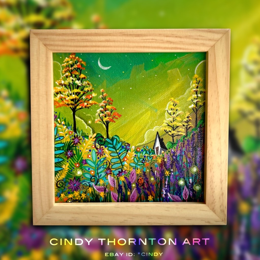 art · earth · nature · painting · trees Country Lights No.26 May 9, 2022October 11, 2022 Cindy Thornton Update: Sold!Now at auction…Country Lights #26 in series. Original acrylic on canvas painting. Canvas measures 6×6 inches, and comes in the wooden frame pictured. Auction ends – 5.12.22. See it on eBay! Share this: Share on Facebook (Opens in new window) Facebook Share on Pinterest (Opens in new window) Pinterest Share on X (Opens in new window) X Share on Tumblr (Opens in new window) Tumblr Share on Reddit (Opens in new window) Reddit Email a link to a friend (Opens in new window) Email Like Loading... Related Published by Cindy Thornton Illustrative Artist at cindythornton.com View all posts by Cindy Thornton Share this: Share on Facebook (Opens in new window) Facebook Share on Pinterest (Opens in new window) Pinterest Share on X (Opens in new window) X Share on Tumblr (Opens in new window) Tumblr Share on Reddit (Opens in new window) Reddit Email a link to a friend (Opens in new window) Email Like Loading...